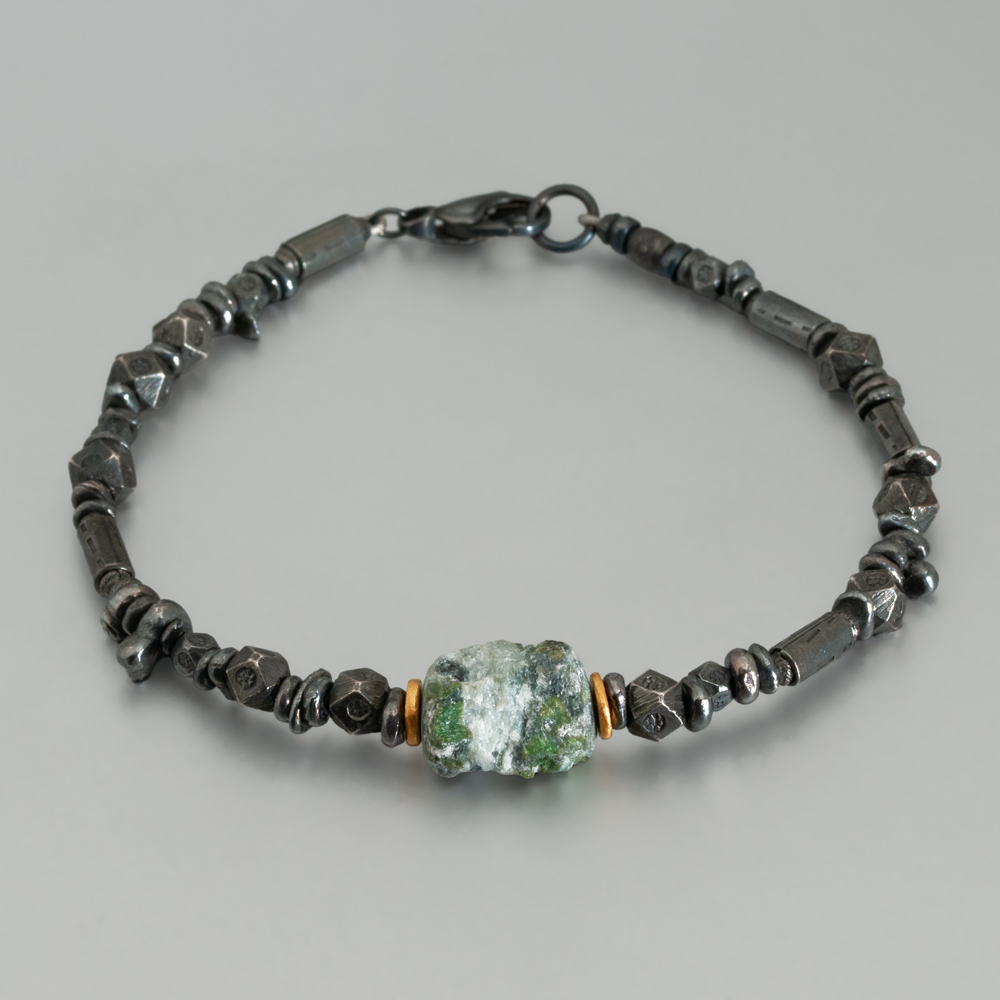 Schönes Herren-Armband aus Silber mit grün marmoriertem Stein, Geschenkidee zu Weihnachten Schmuck Herren-Armband