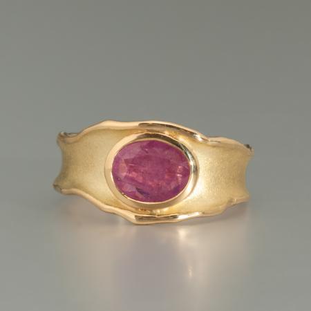 1001052 Handgefertigter Goldring in 750 Gold mit einem ovalen, unbehandelten Rubin.